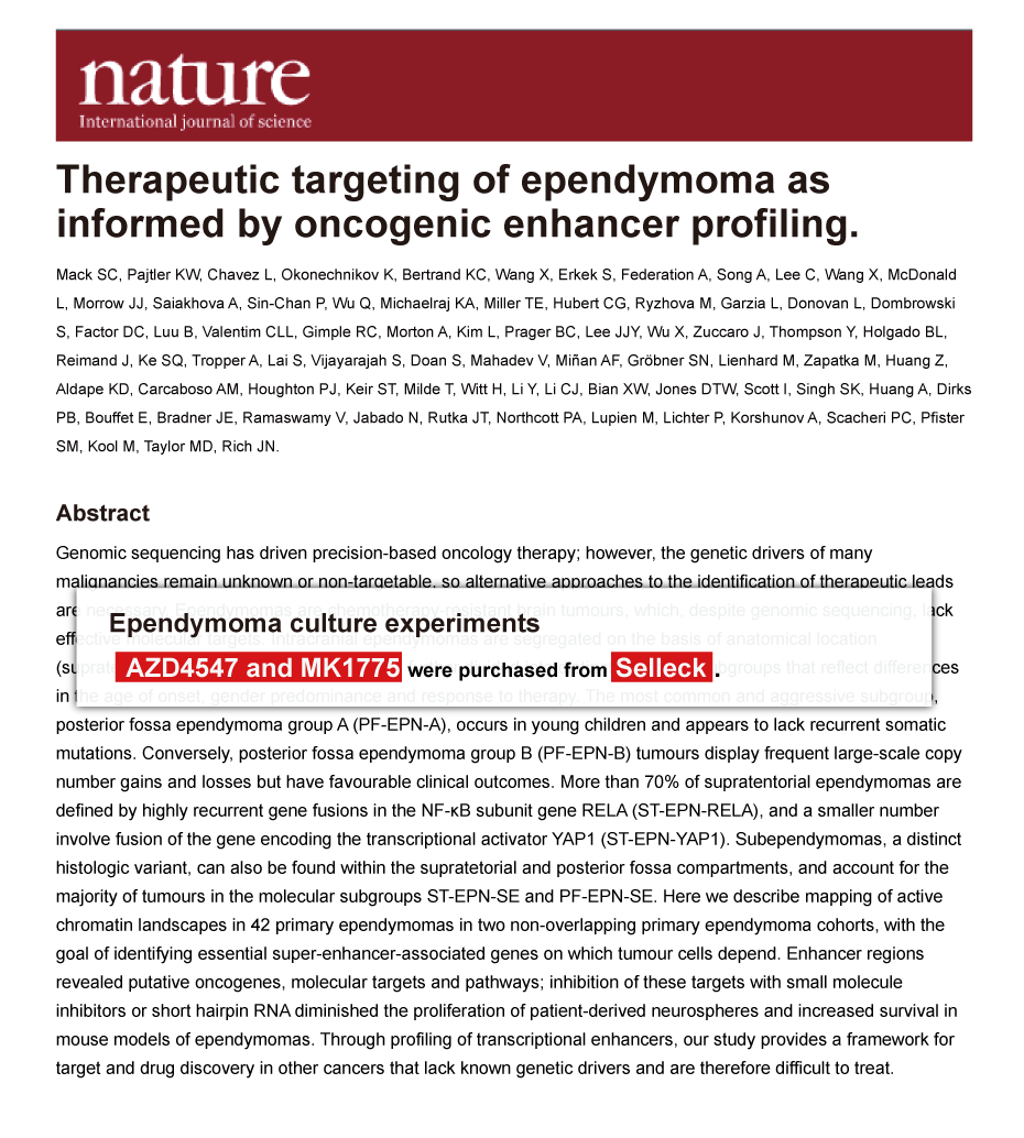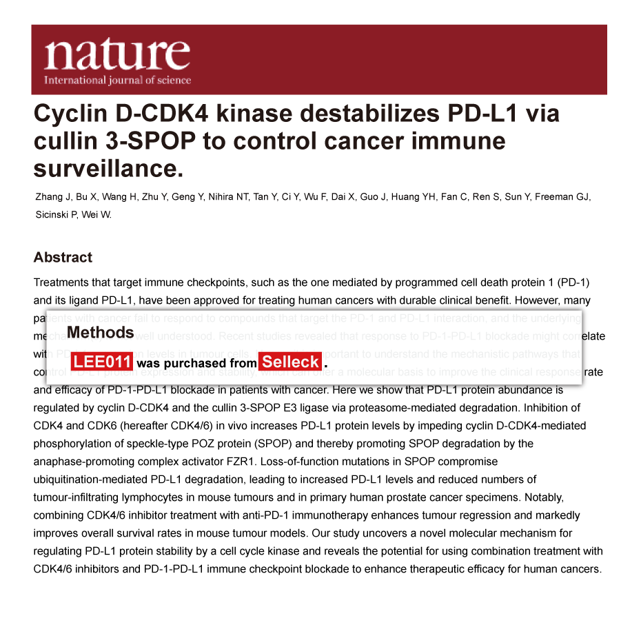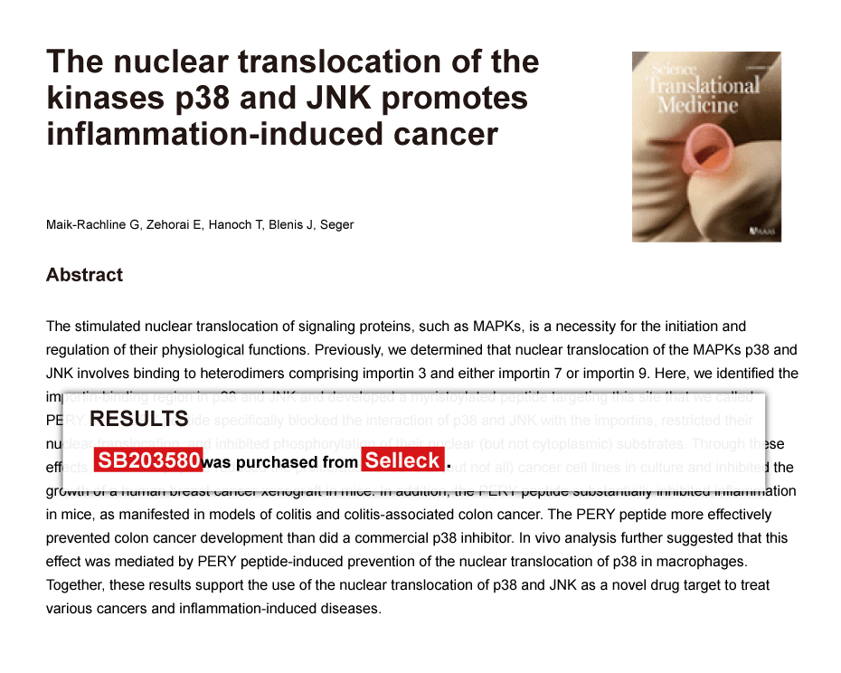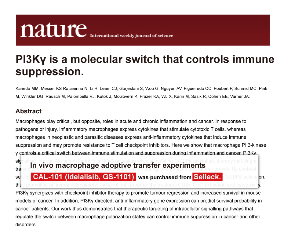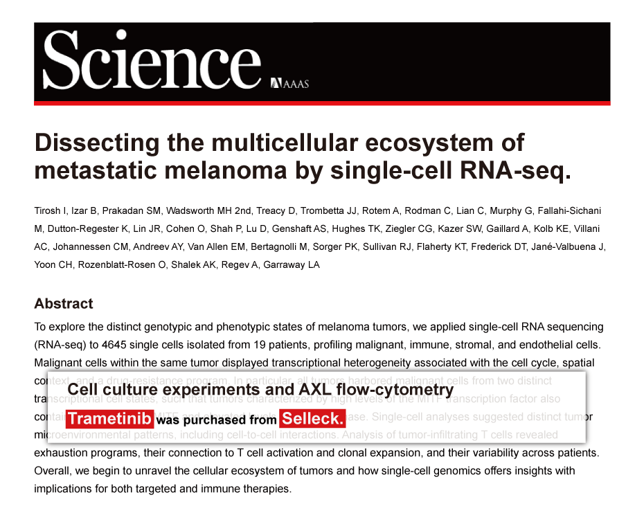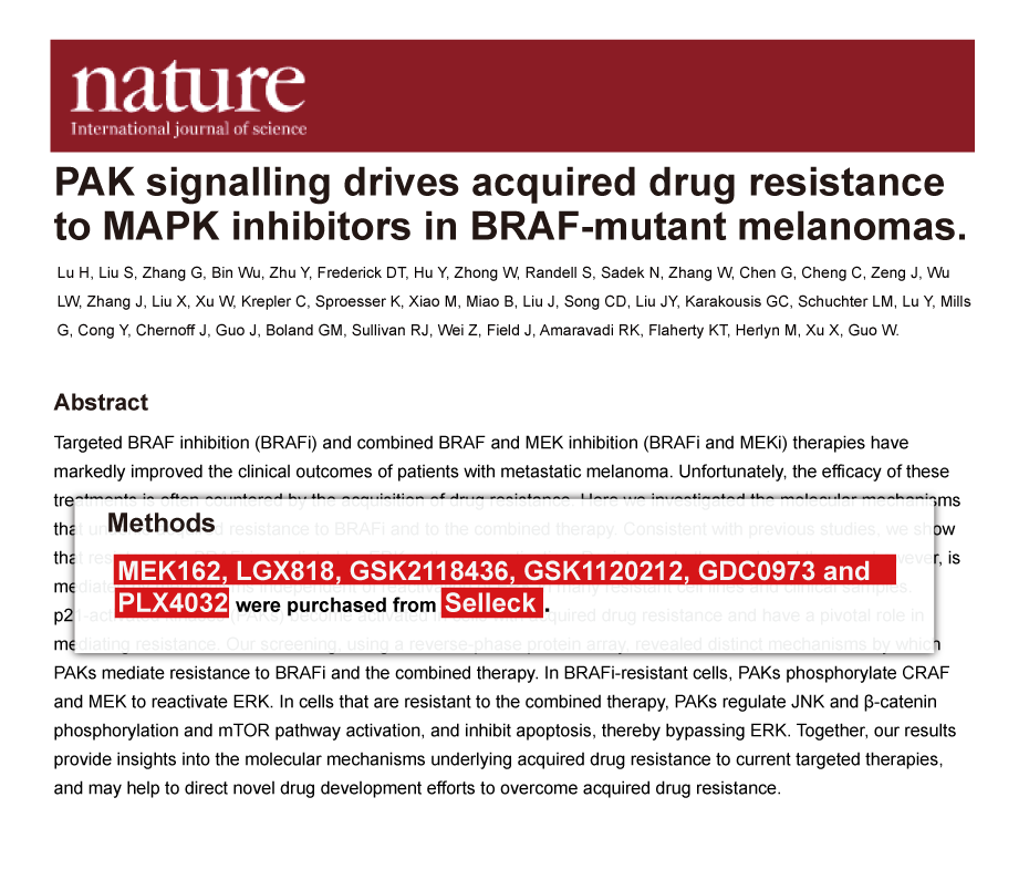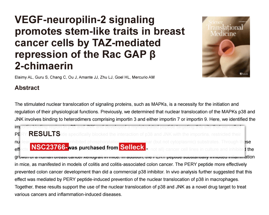 Since Jan 2015, Selleckchem products have been cited in 113 studies from top scientific journals.