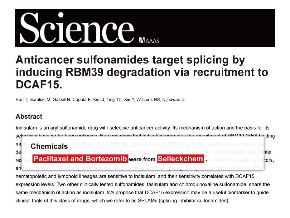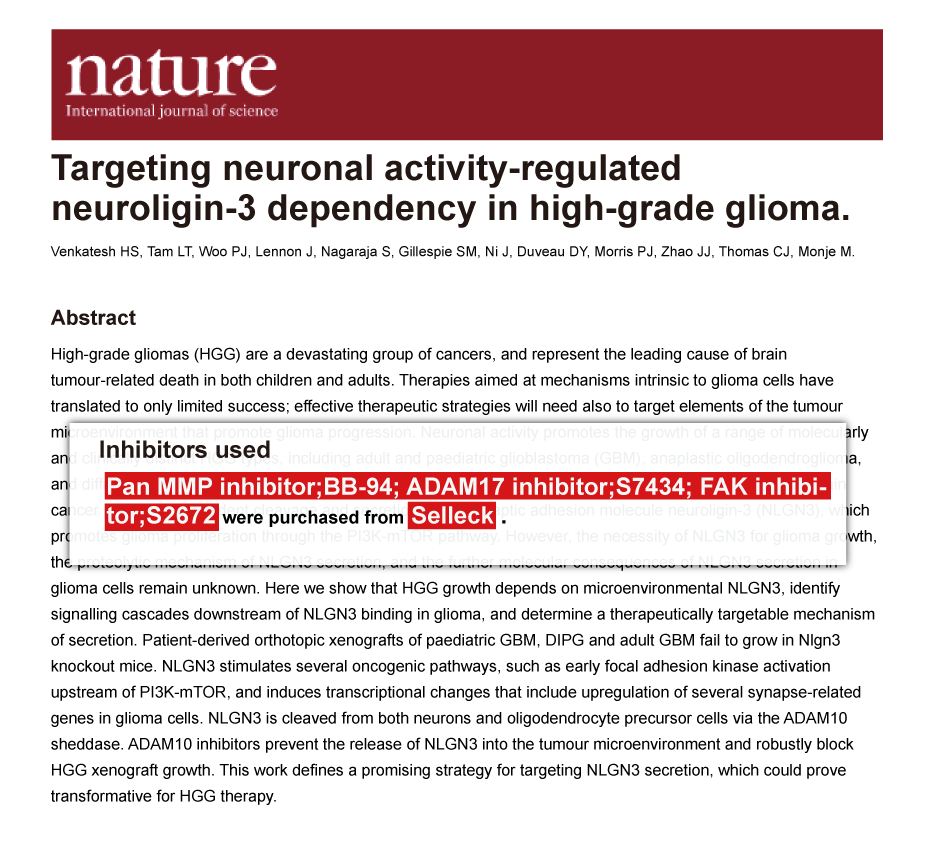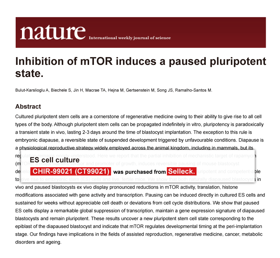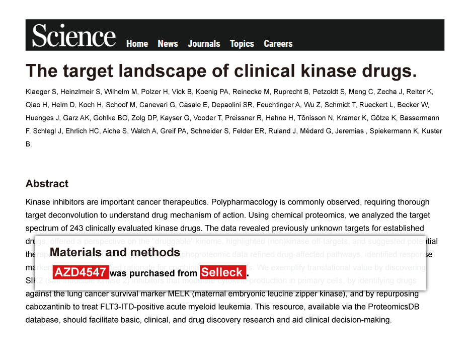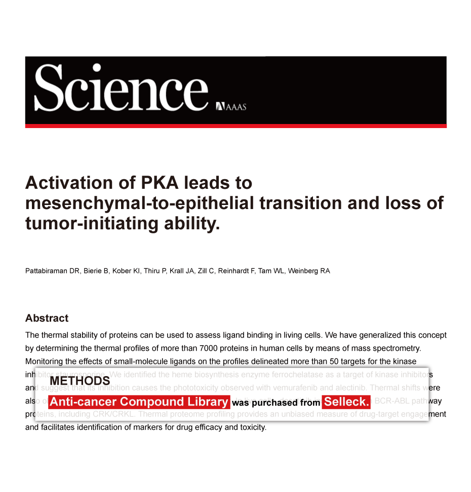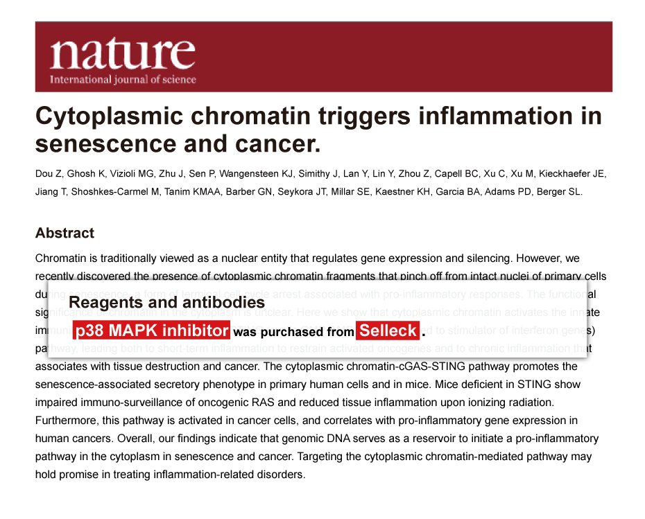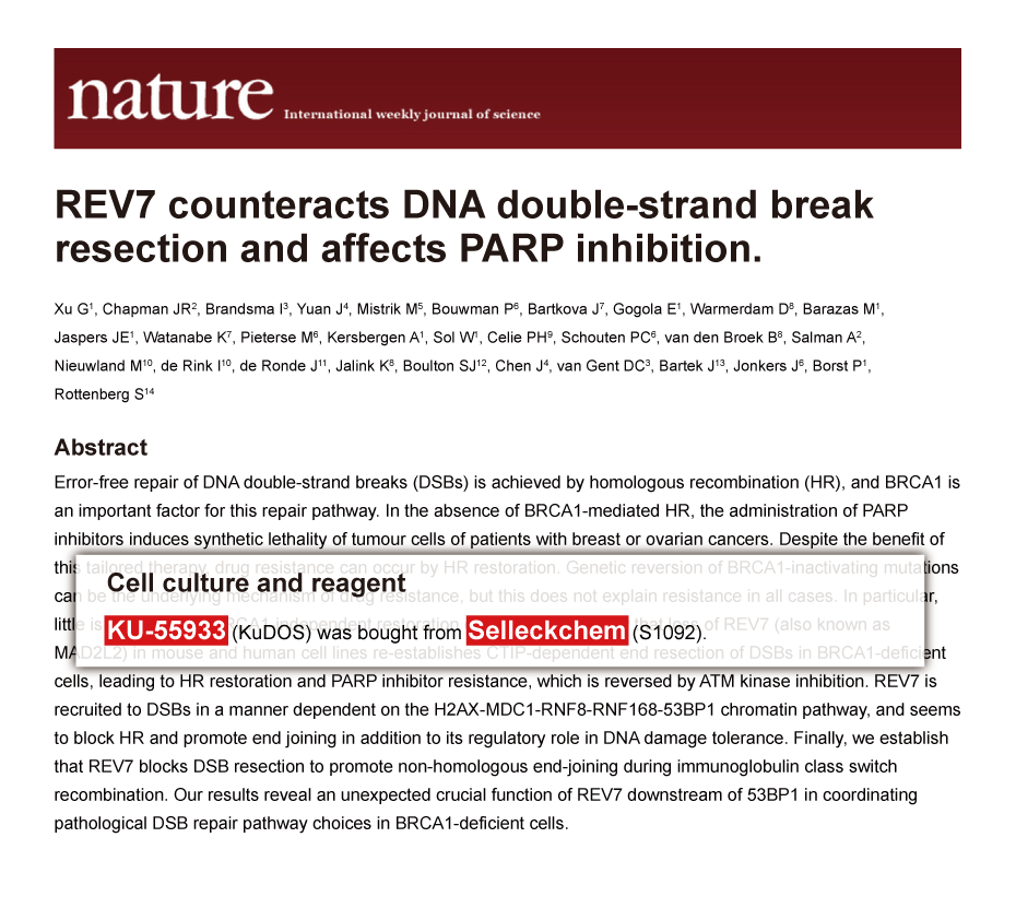 Since Jan 2015, Selleckchem products have been cited in 113 studies from top scientific journals.