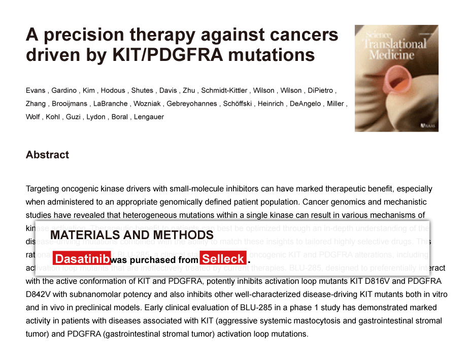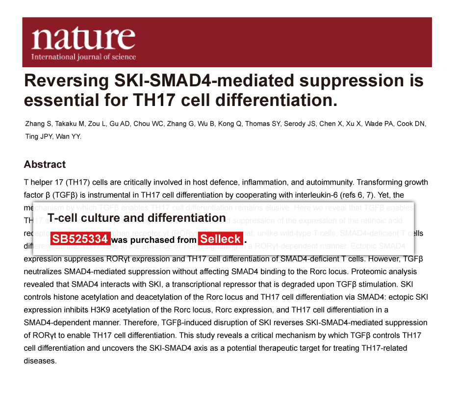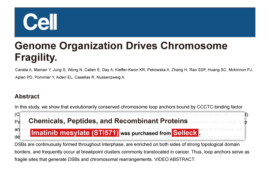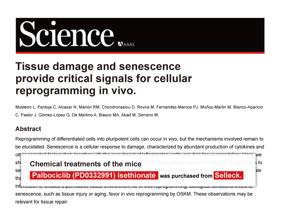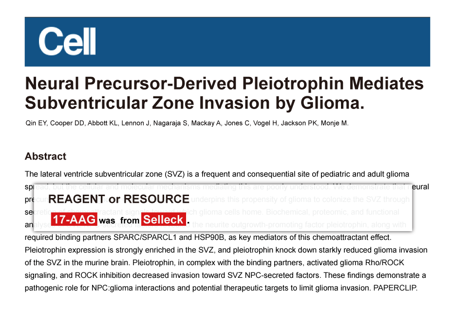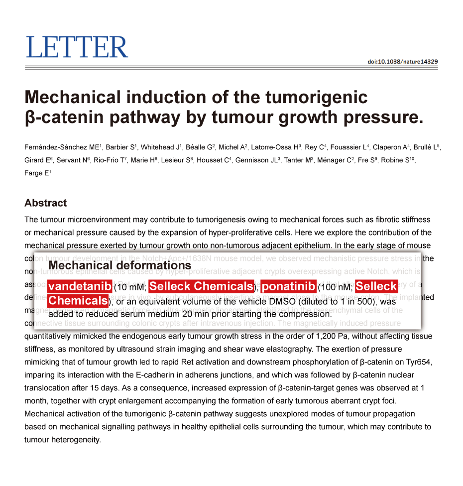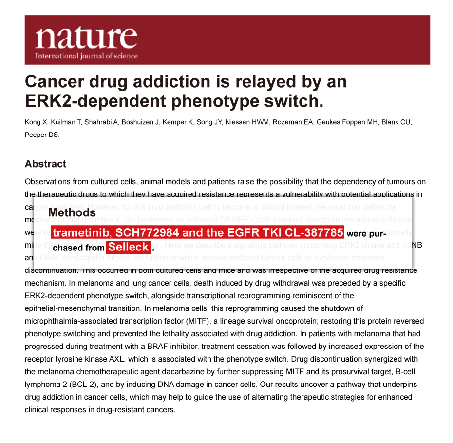 Since Jan 2015, Selleckchem products have been cited in 113 studies from top scientific journals.