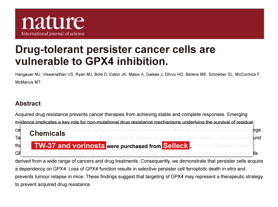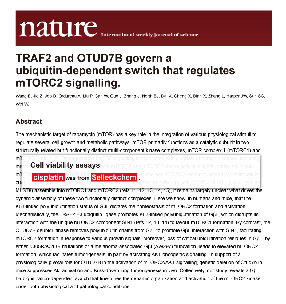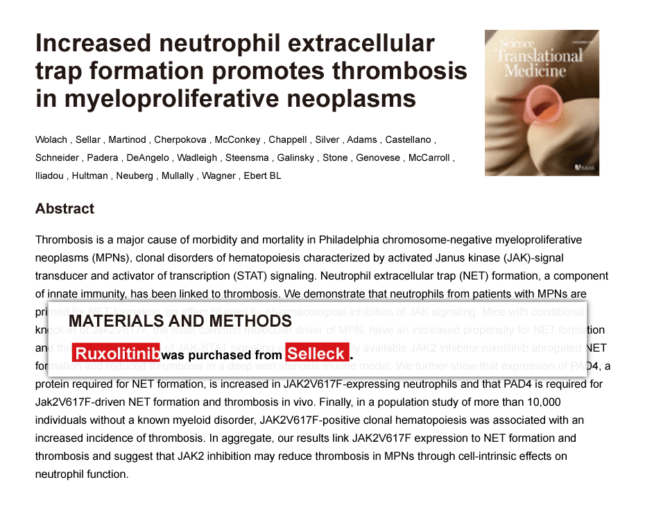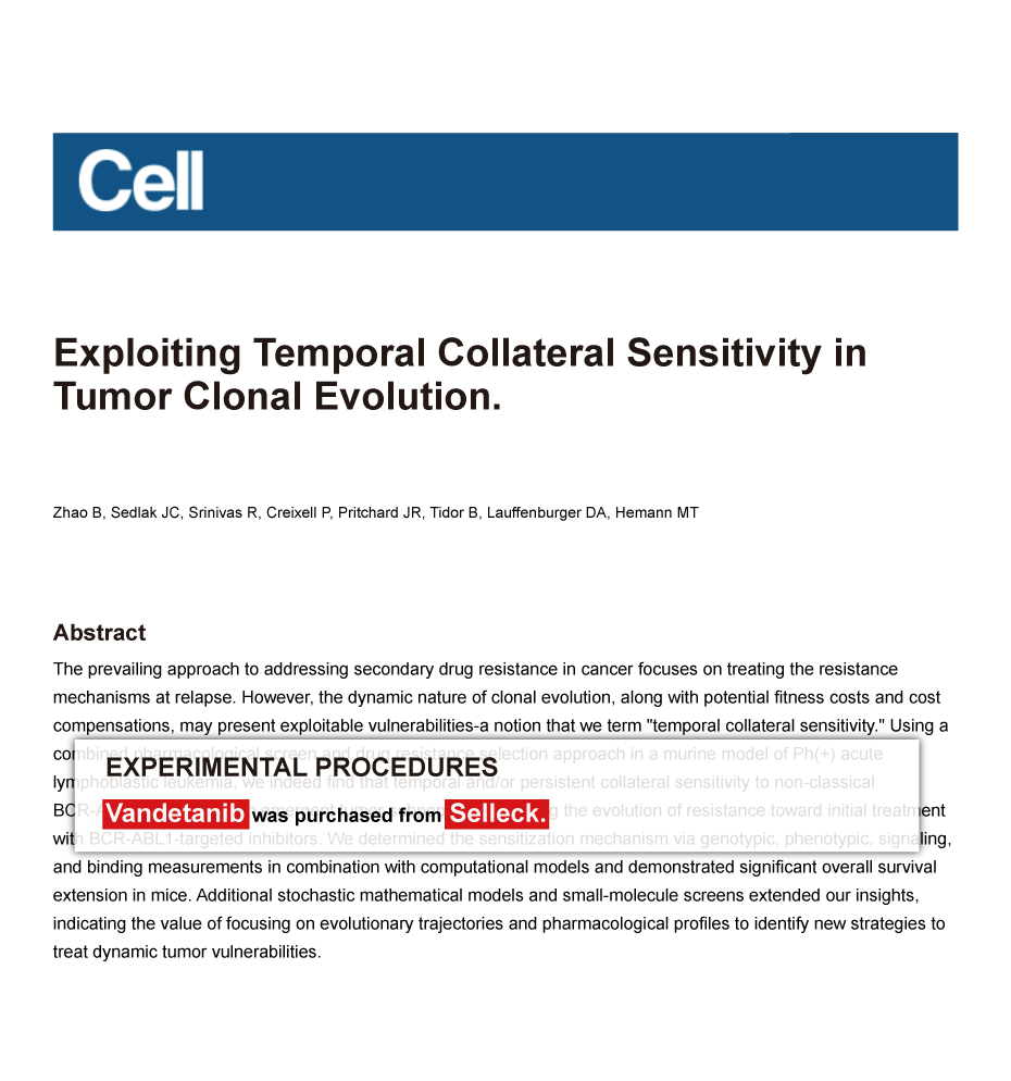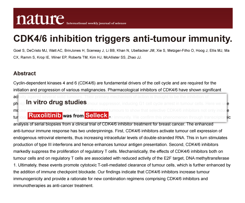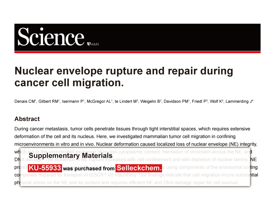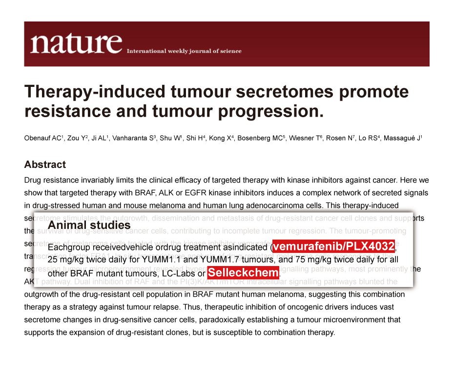 Since Jan 2015, Selleckchem products have been cited in 113 studies from top scientific journals.
