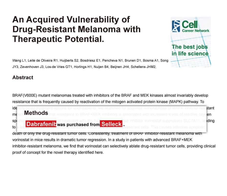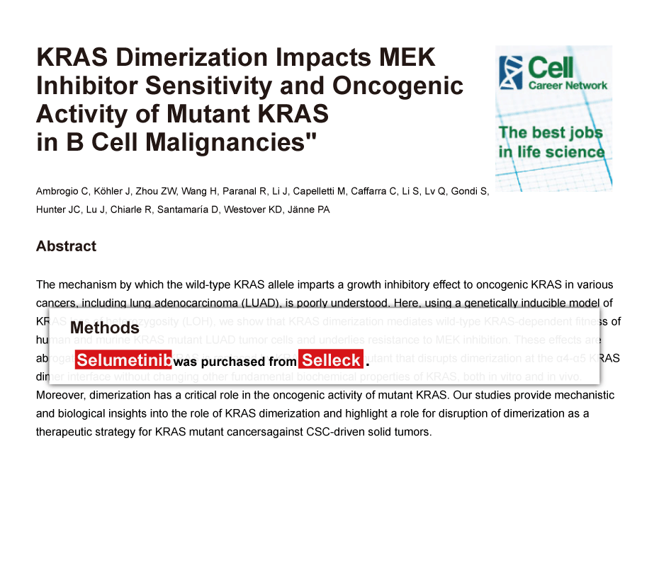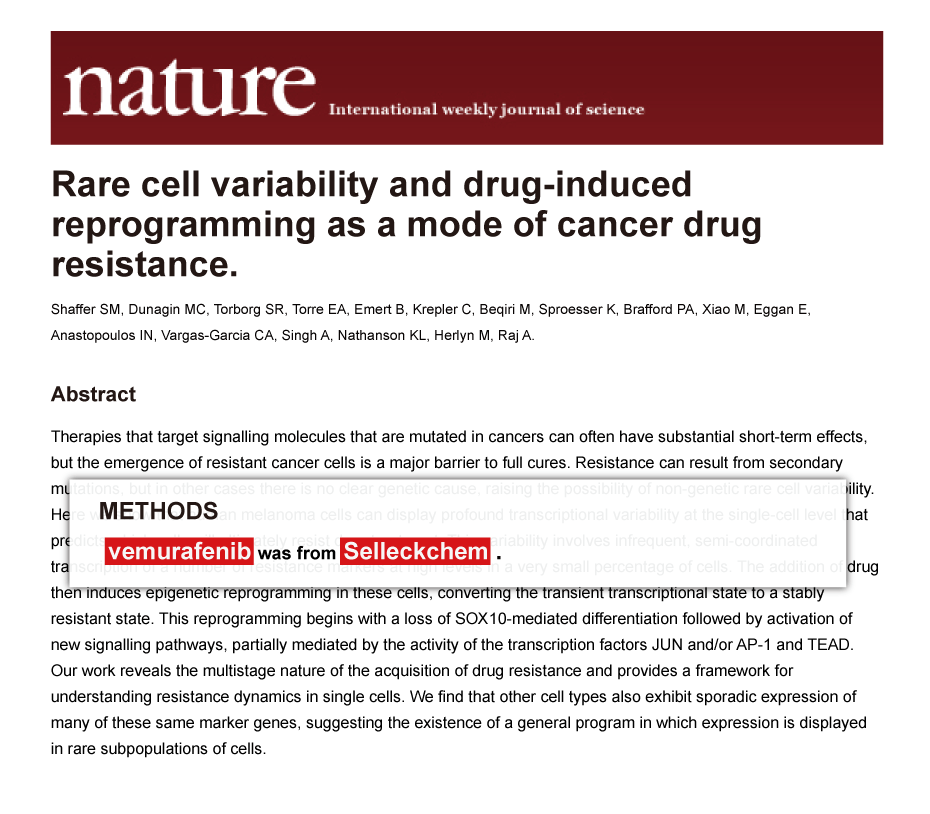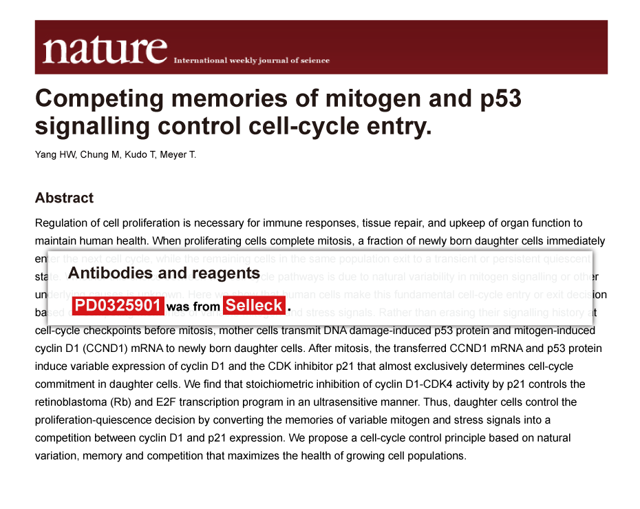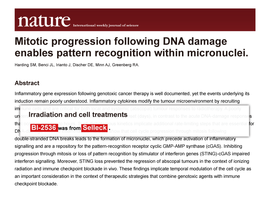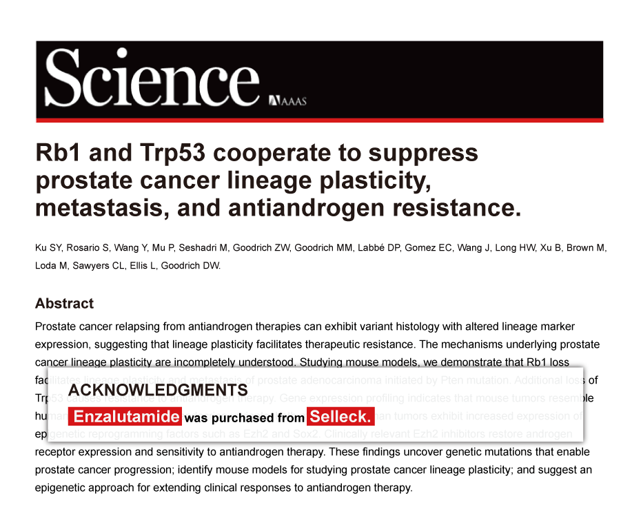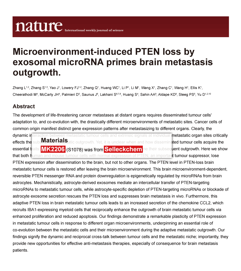 Since Jan 2015, Selleckchem products have been cited in 113 studies from top scientific journals.