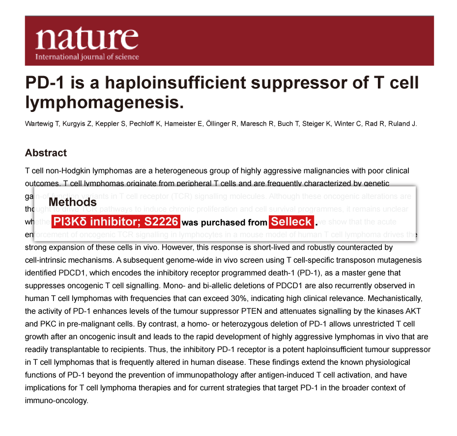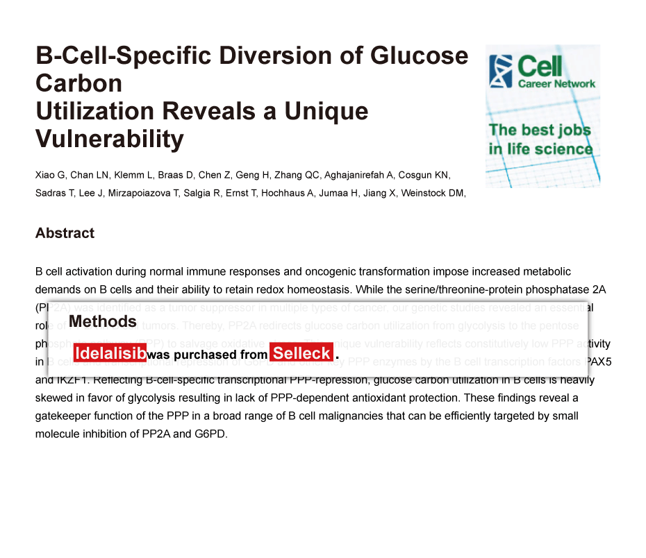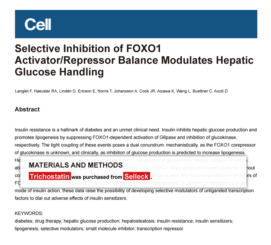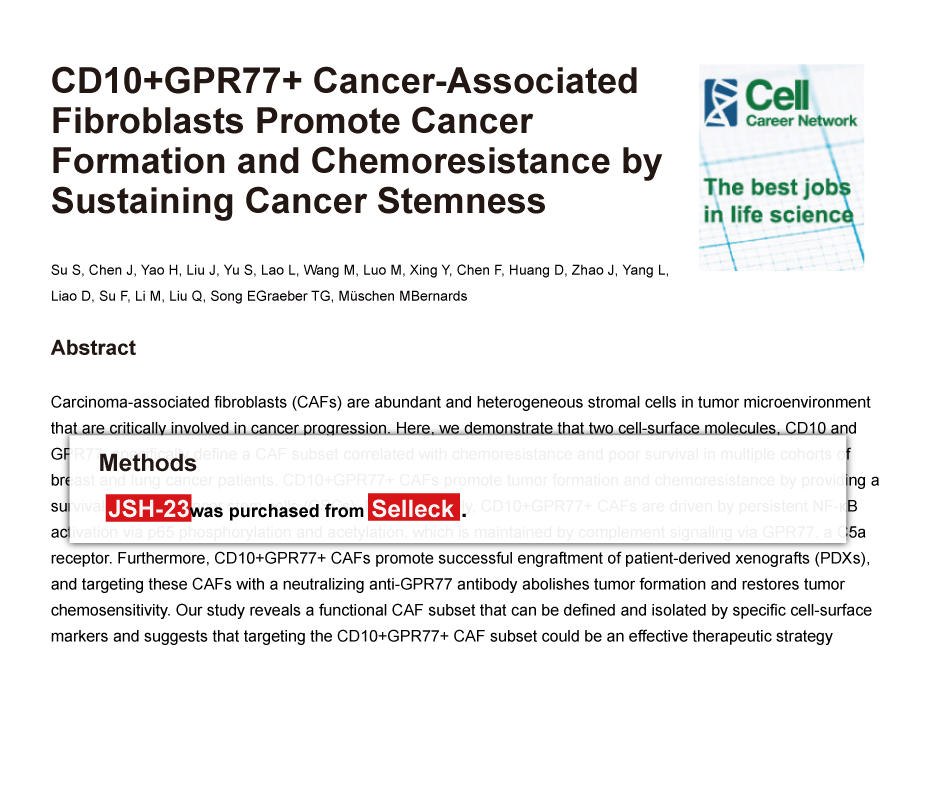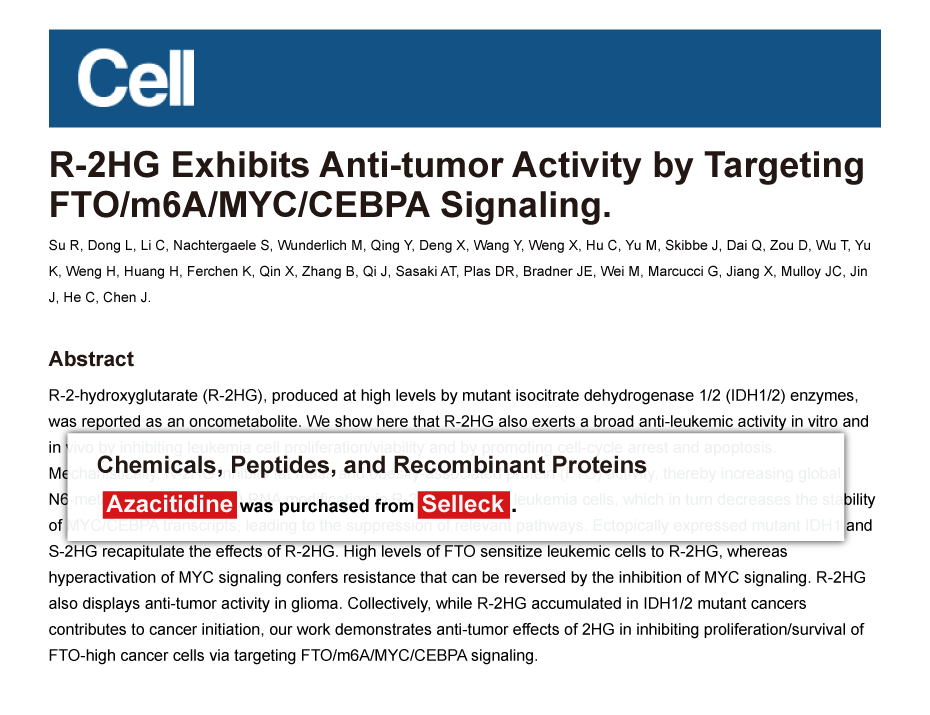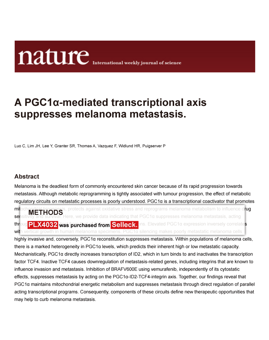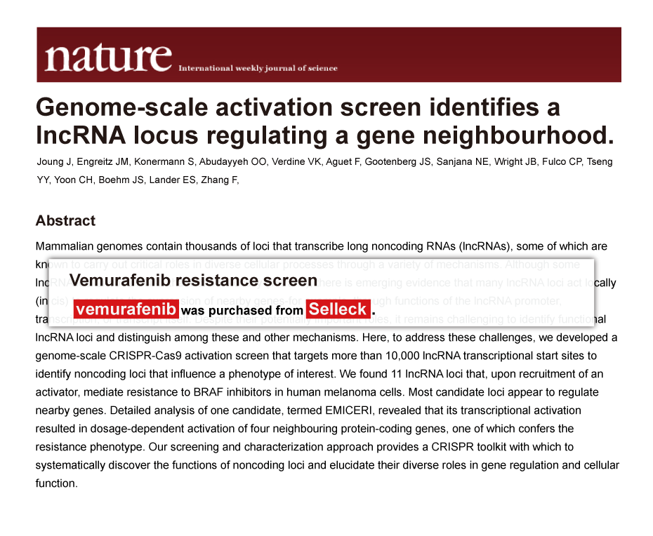 Since Jan 2015, Selleckchem products have been cited in 113 studies from top scientific journals.