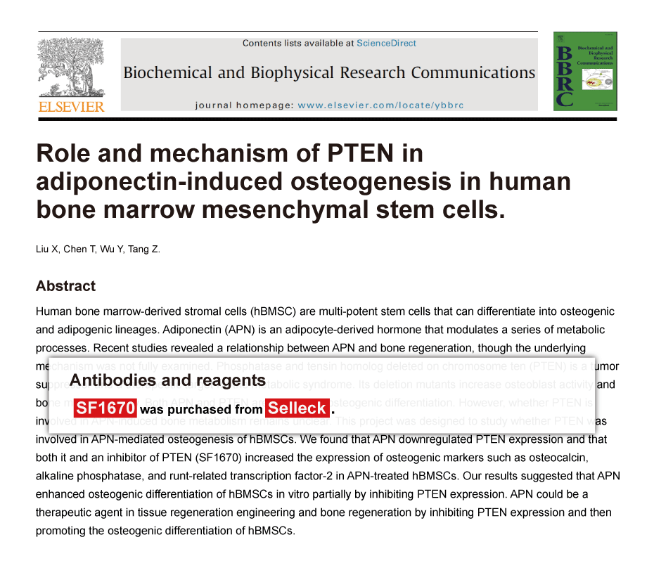 SF1670SF1670 is a highly potent and specific PTEN inhibitor with IC50 of 2 μM. |