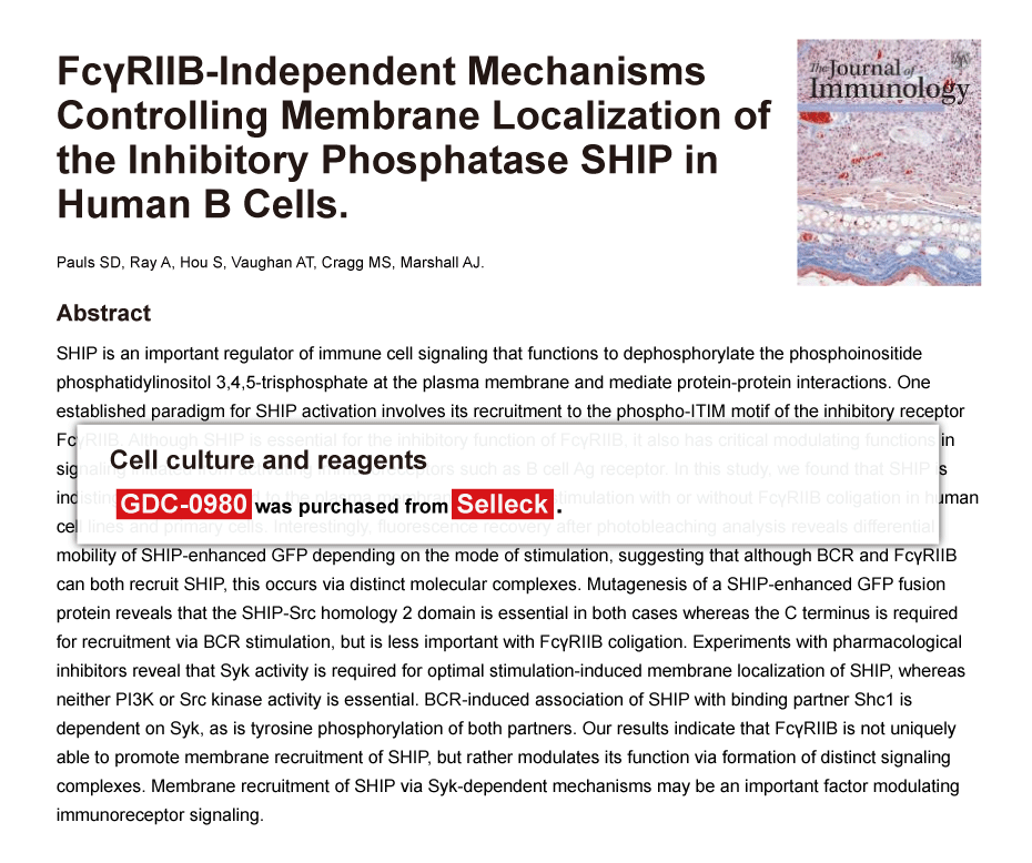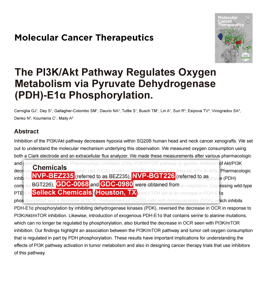 PLoS One 2014 9(9), e105919. Apitolisib (GDC-0980, RG7422) purchased from Selleck.