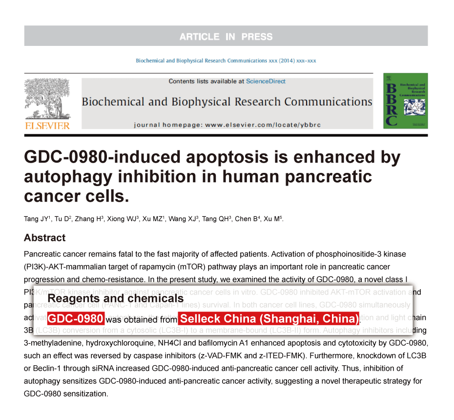 Dr.Wang Wei from NanFang Hospital. Apitolisib (GDC-0980, RG7422) purchased from Selleck.