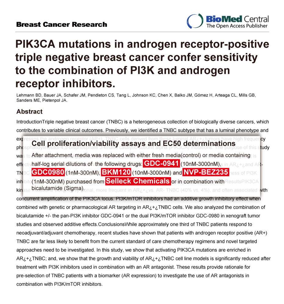 Breast Cancer Res 2014 16(4), 406. Apitolisib (GDC-0980, RG7422) purchased from Selleck.