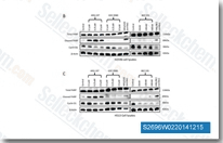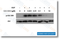 Enzymatic activity: Enzymatic activity of the Class I PI3K isoforms is measured using a fluorescence polarization assay that monitors formation of the product 3,4,5-inositoltriphosphate molecule as it competes with fluorescently labeled PIP3 for binding to the GRP-1 pleckstrin homology domain protein. An increase in phosphatidyl inositide-3-phosphate product results in a decrease in fluorescence polarization signal as the labeled fluorophore is displaced from the GRP-1 protein binding site. Class I PI3K isoforms are expressed and purified as heterodimeric recombinant proteins. PI3K isoforms are assayed under initial rate conditions in the presence of 10 mM Tris (pH 7.5), 25 μM ATP, 9.75 μM PIP2, 5% glycerol, 4 mM MgCl2, 50 mM NaCl, 0.05% (v/v) Chaps, 1 mM dithiothreitol, 2% (v/v) DMSO at the following concentrations for each isoform: PI3Kα,β at 60 ng/mL; PI3Kγ at 8 ng/mL; PI3Kδ at 45 ng/mL. After assay for 30 minutes at 25°C, reactions are terminated with a final concentration of 9 mM EDTA, 4.5 nM TAMRA-PIP3, and 4.2 μg/mL GRP-1 detector protein before reading fluorescence polarization on an Envision plate reader. IC50s are calculated from the fit of the dose−response curves to a 4-parameter equation.Human recombinant mTOR(1360−2549) is expressed and purified from insect cells and assayed using a Lanthascreen fluorescence resonance energy transfer format in which phosphorylation of recombinant green fluorescent protein (GFP)-4-EBP1 is detected using a terbium-labeled antibody to phospho-threonine 37/46 of 4-EBP1. Reactions are initiated with ATP and conducted in the presence of 50 mM Hepes (pH 7.5), 0.25 nM mTOR, 400 nM GFP-4E-BP1, 8 μM ATP, 0.01% (v/v) Tween 20, 10 mM MnCl2, 1 mM EGTA, 1 mM dithiothreitol, and 1% (v/v) DMSO. Assays are conducted under initial rate conditions at room temperature for 30 minutes before terminating the reaction and detecting product in the presence of 2 nM Tb-anti-p4E-BP1 antibody and 10 mM EDTA. Dose−response curves are fit to an equation for competitive tight-binding inhibition and apparent Ki' s are calculated using the determined Km for ATP of 6.1 μM. |