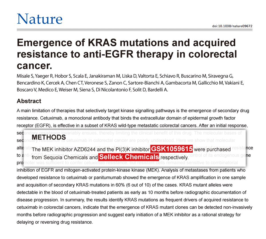 | In vivo | In xenograft mice models of BT474 or HCC1954 breast cancer cells, GSK1059615 (25 mg/kg) effectively inhibits tumor growth. [3] |