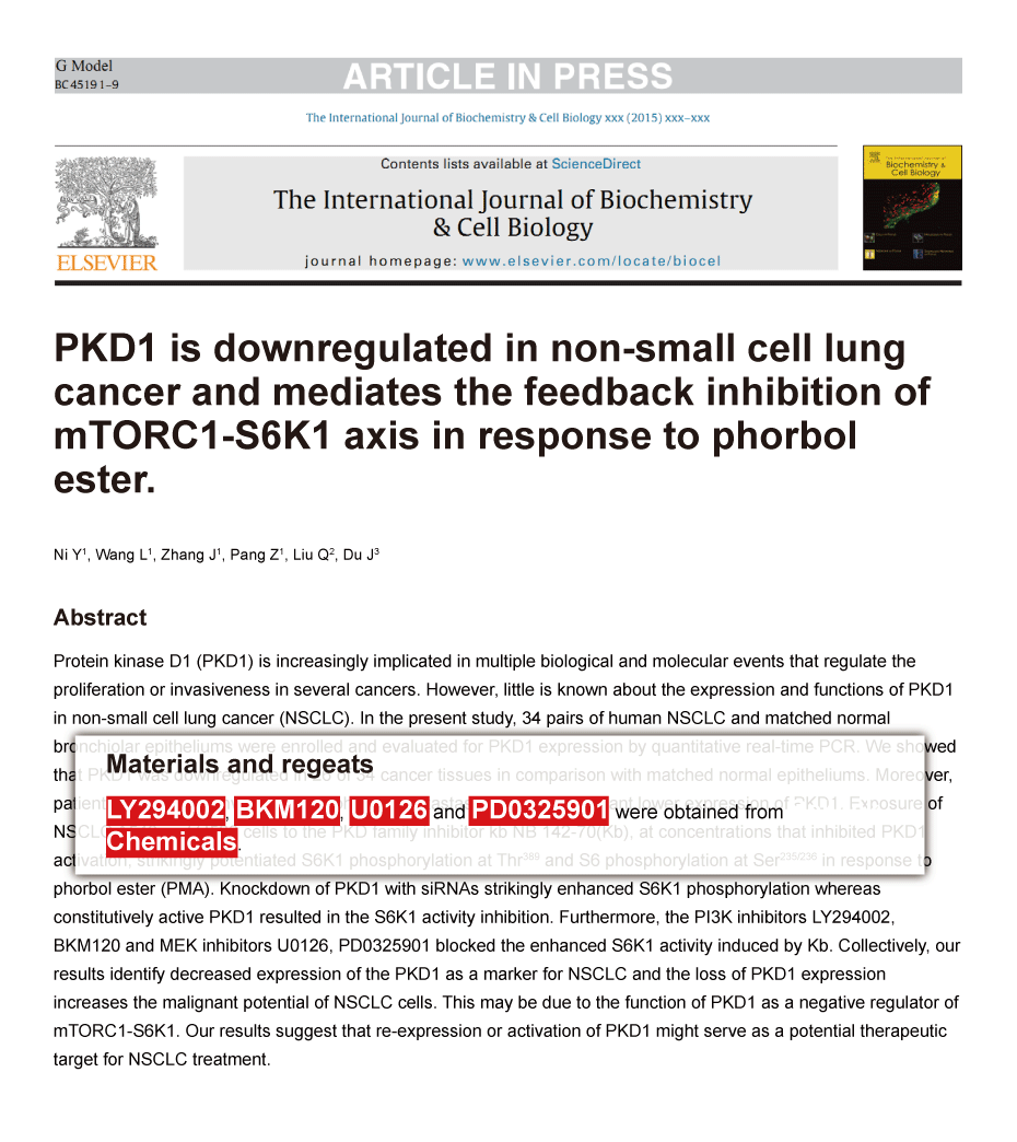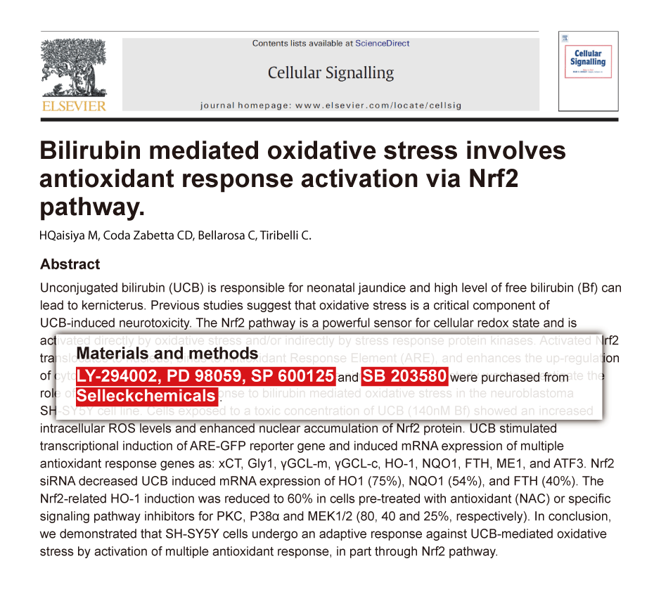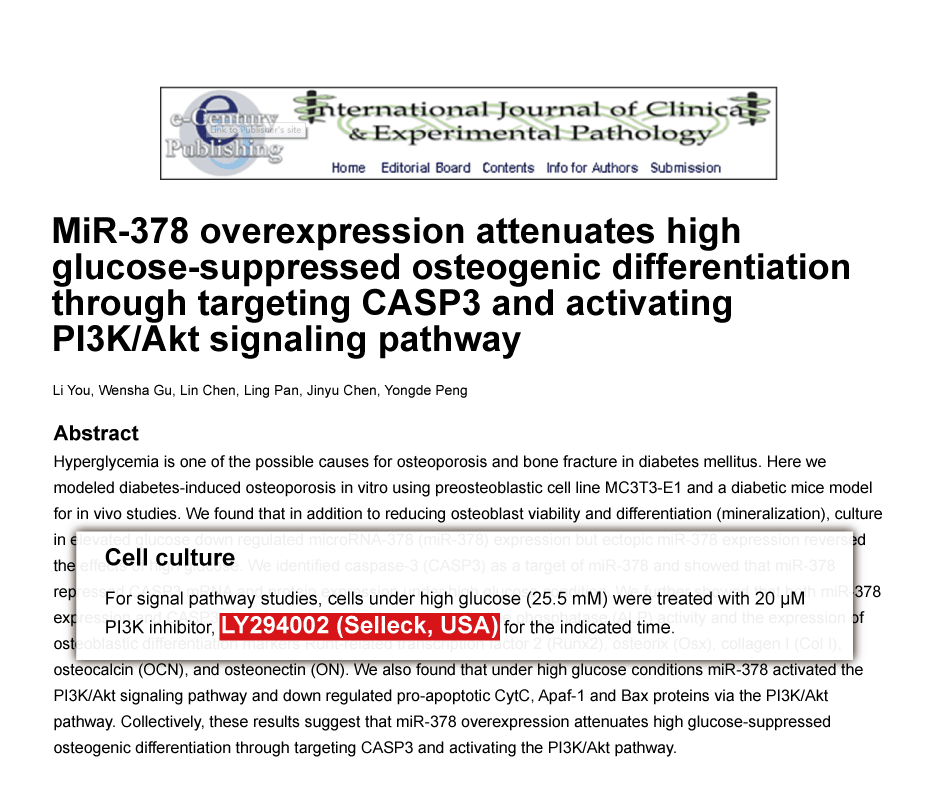 Int J Biochem Cell Biol 2015 60, 34-42. LY294002 purchased from Selleck.