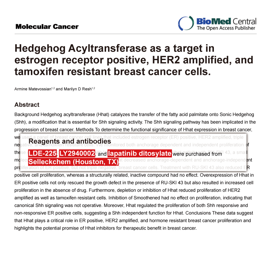 2010 Saraswati Sukumar of Johns Hopkins University School of Medicine. LY294002 purchased from Selleck.