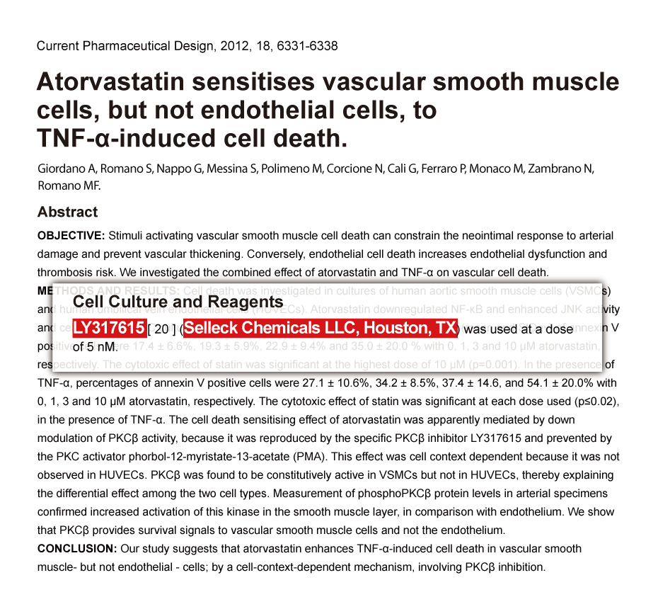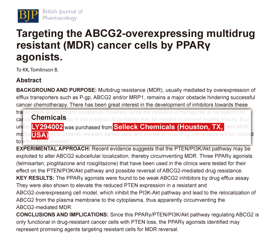 Br J Pharmacol 2013 70(5), 1137-51. LY294002 purchased from Selleck.