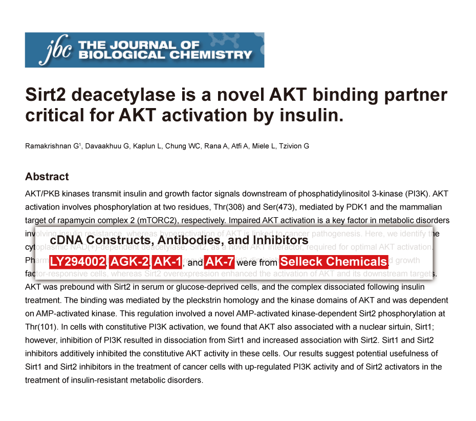 I want to buy a inhibitor that can inactivates Akt/PI3K. I notice the protocol of LY294002 (catalog no. s1105) says it will inactivates Akt/PKB. Is LY294002 available for Akt/PI3K inhibition?