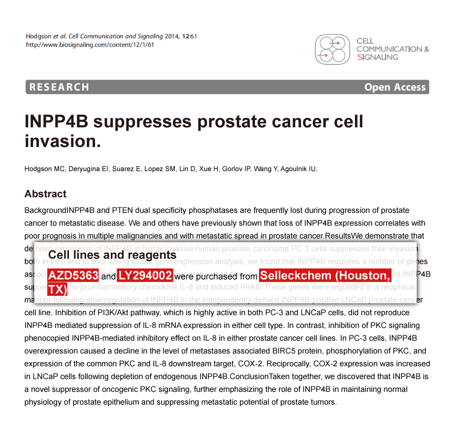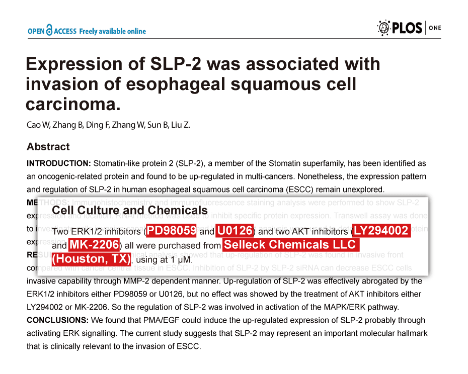Mol Oncol 2013 7, 359-68. LY294002 purchased from Selleck.