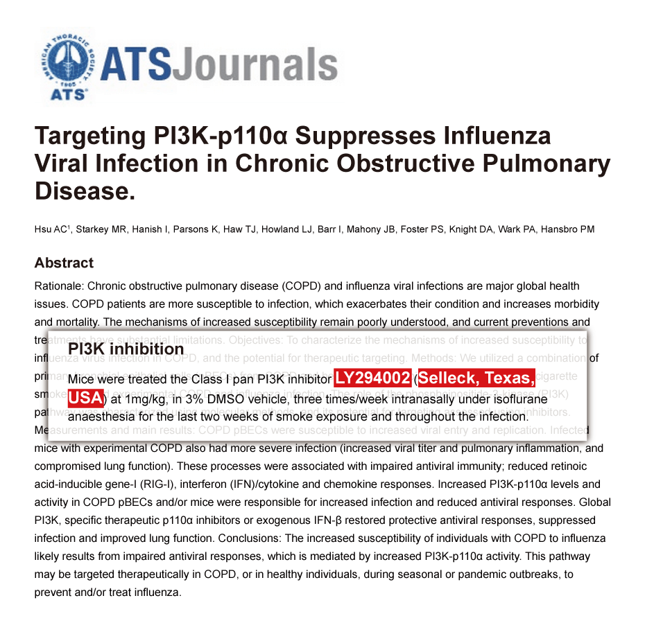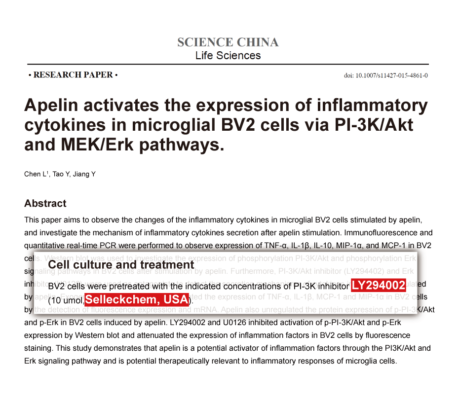 Cell Mol Immunol, 2017, 14(2):192-202. LY294002 purchased from Selleck.