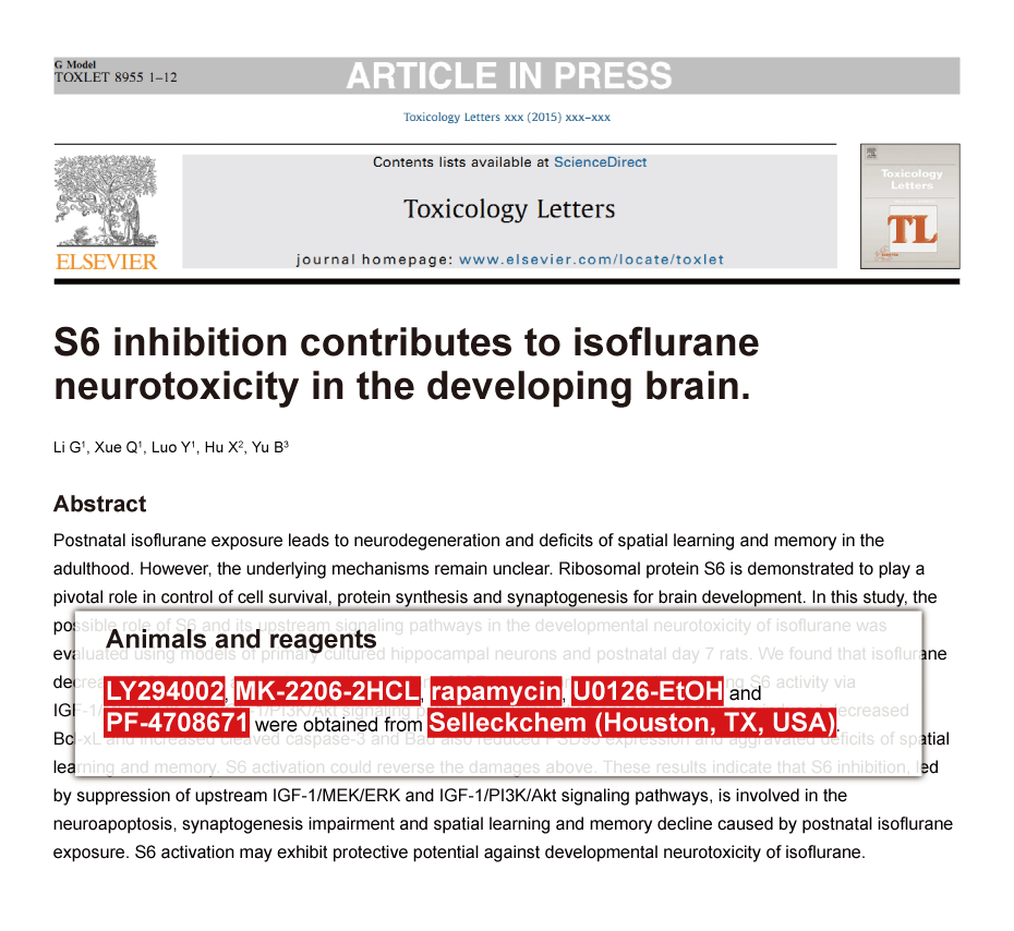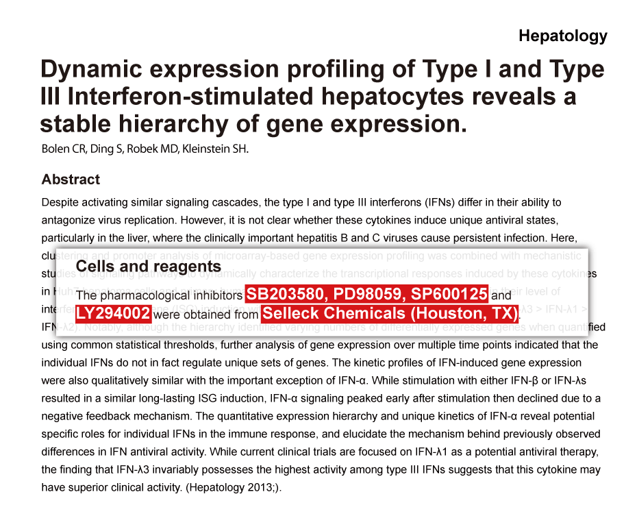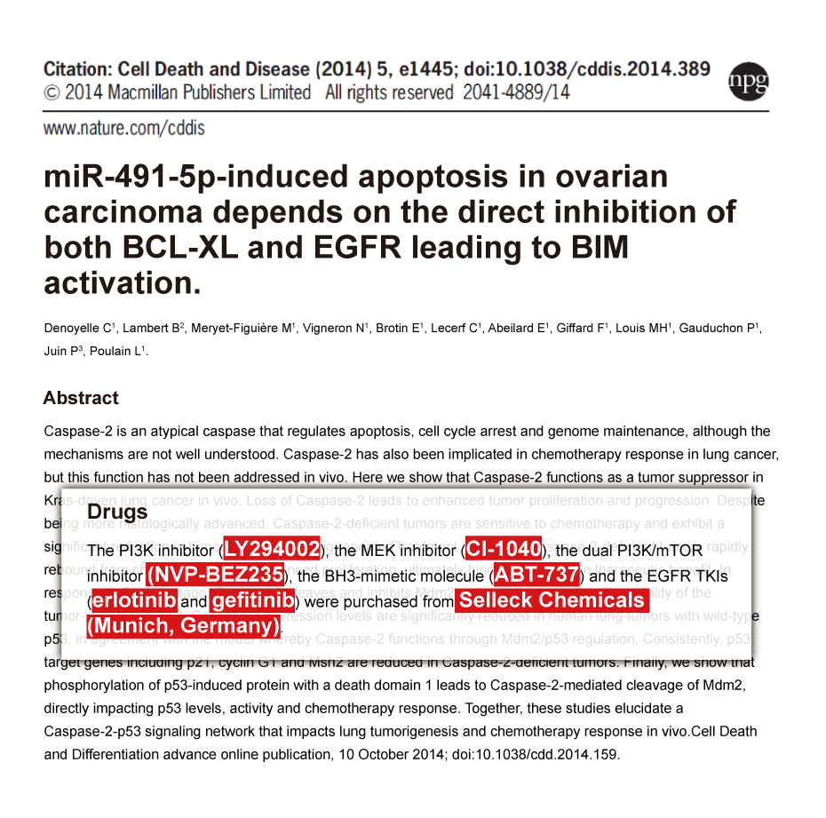 Answers to questions you may have can be found in the inhibitor handling instructions. Topics include how to prepare stock solutions, how to store inhibitors, and issues that need special attention for cell-based assays and animal experiments.