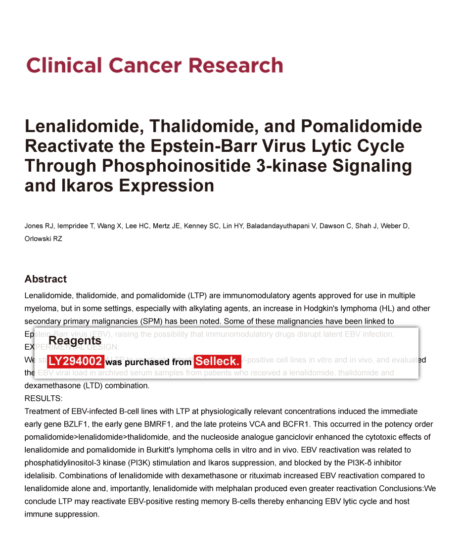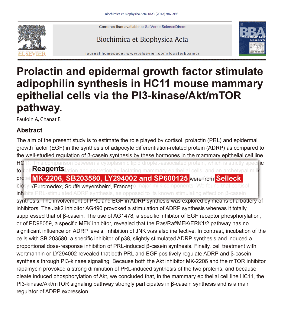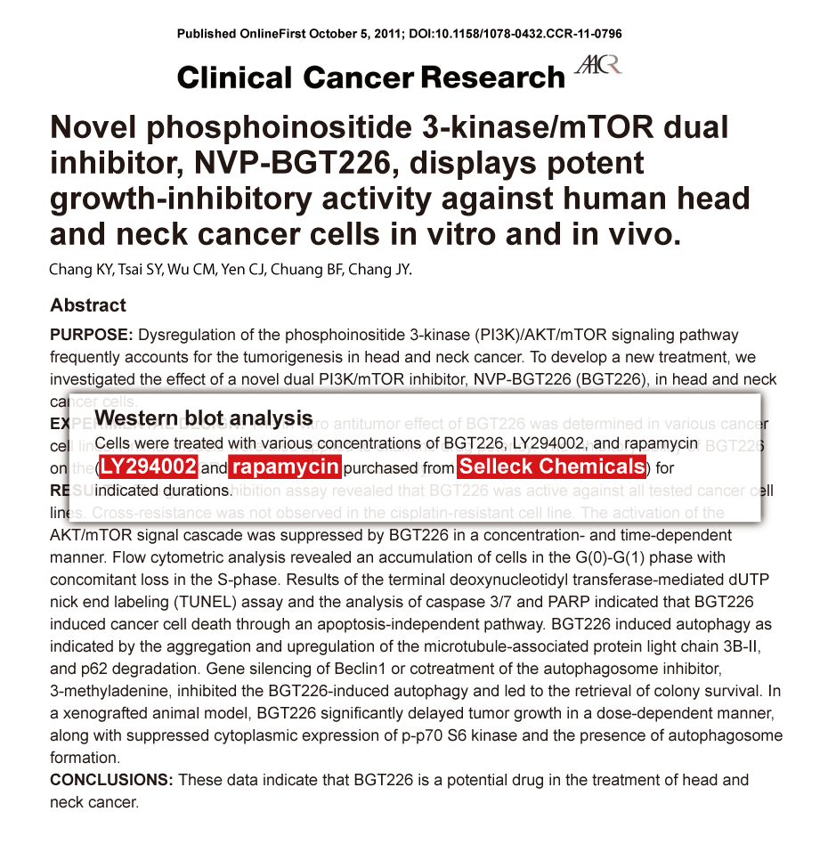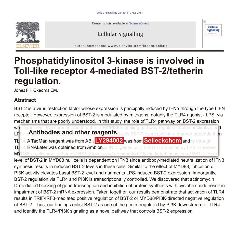 Biochim Biophys Acta 2012 1823(5), 987-96. LY294002 purchased from Selleck.