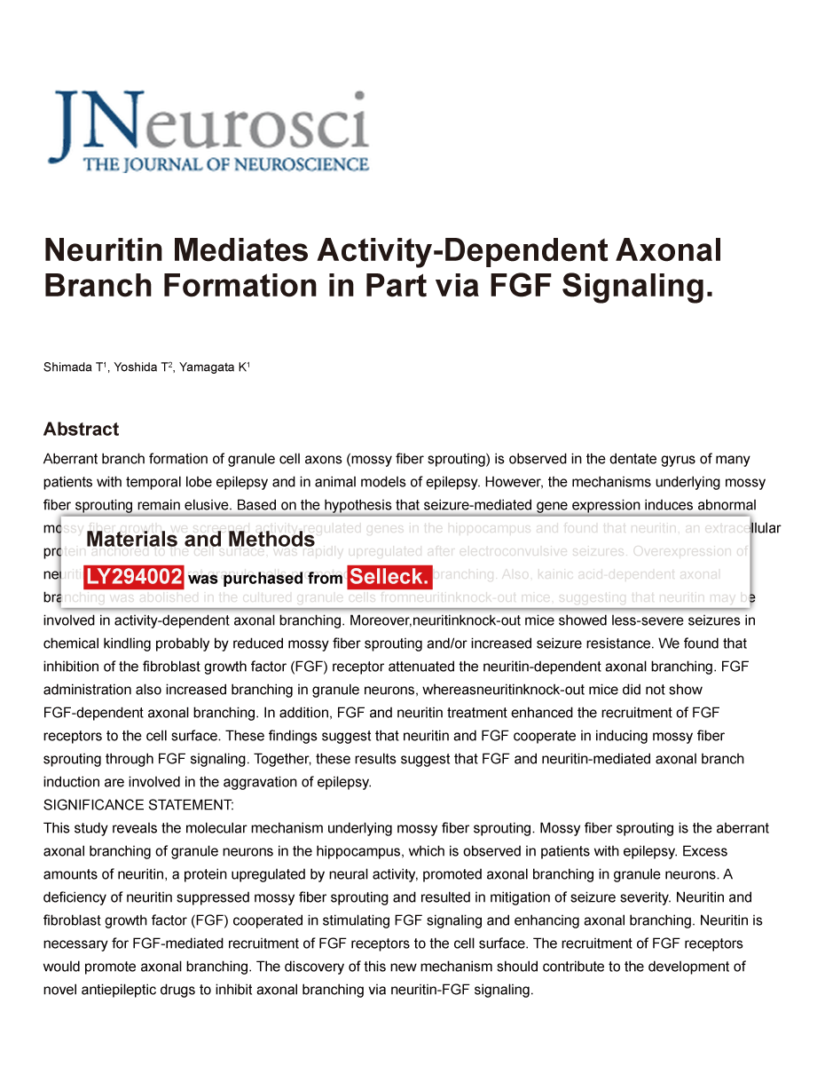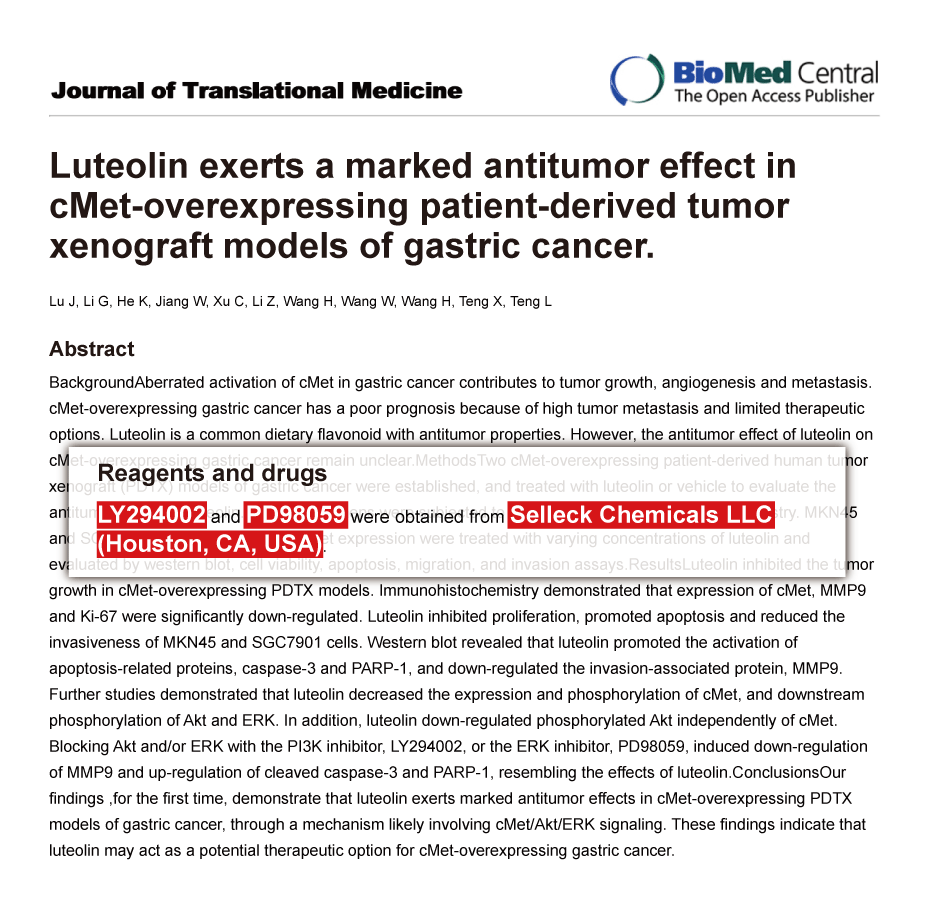 Sci Rep 2015 5, 11634. LY294002 purchased from Selleck.