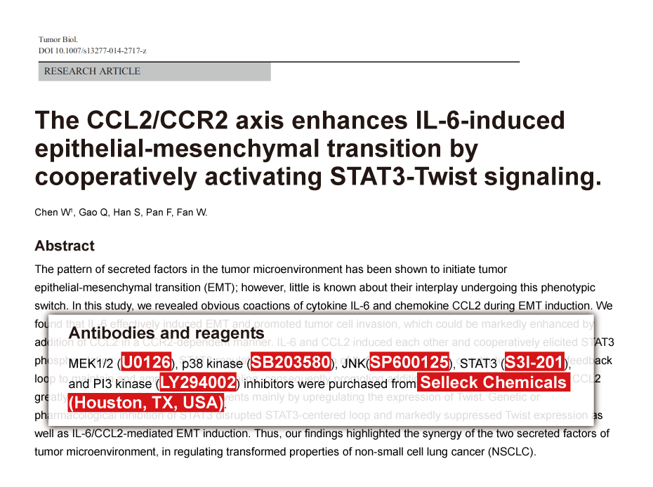 Oncogene 2012 31, 3277–3286. LY294002 purchased from Selleck.