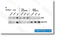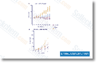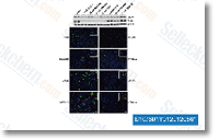 LY294002 inactivates Akt/PKB, consequently inhibiting cell proliferation and inducing apoptosis. LY294002 demonstrates a remarkable growth-inhibitory and apoptosis-inducing effect in these colon cancer cell lines, with decreased expression of phosphorylated Akt (Ser473). [2]LY294002 induces marked nuclear pyknosis and diminished cytoplasmic volume in the tumor cells. Thus, LY294002 markedly inhibits ovarian cancer cell proliferation in vitro. LY294002 induces specific G1 arrest in cell growth, leading to almost complete inhibition of melanoma cell proliferation and partial inhibition of MG-63 (osteosarcoma cell line) proliferation. The effect of LY294002 on cell cycle progression may provide insights into a possible link between the PI3K activation pathway and cancer cell cycle regulation. [3] |