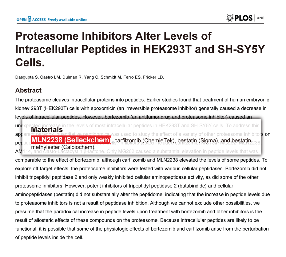 | Other Proteasome Inhibitors | MG132 Epoxomicin (BU-4061T) ONX-0914 (PR-957) Oprozomib Delanzomib VR23 Marizomib (Salinosporamide A) PI-1840 KSQ-4279 (USP1-IN-1) Isoginkgetin |