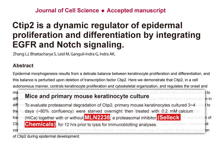 Method for preparing in vivo formulation: Take μL DMSO master liquid, next addμL PEG300, mix and clarify, next addμL Tween 80, mix and clarify, next add μL ddH2O, mix and clarify.