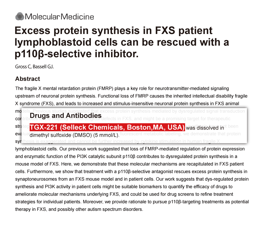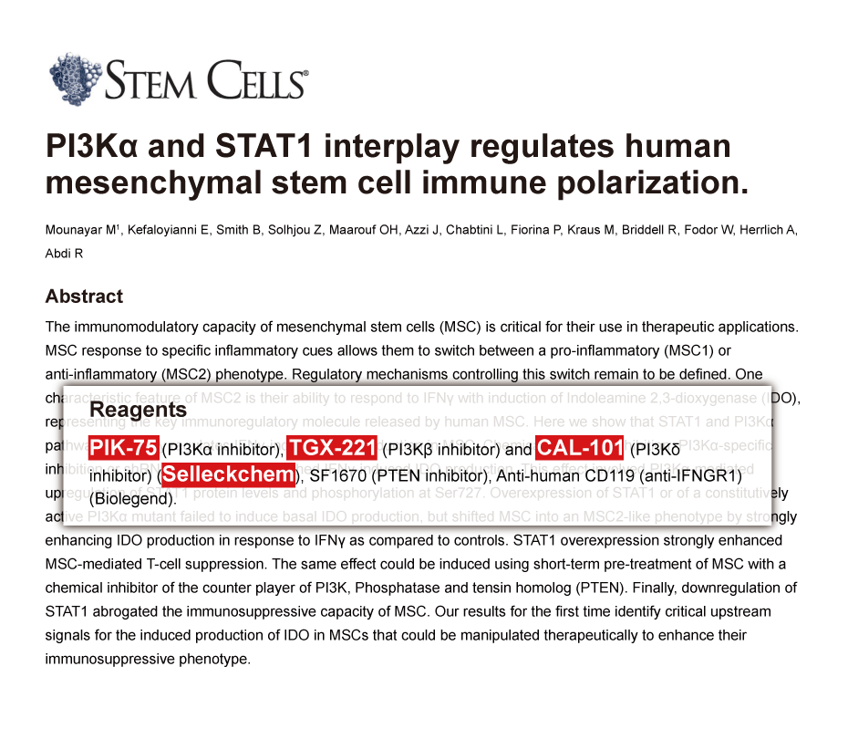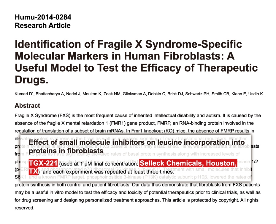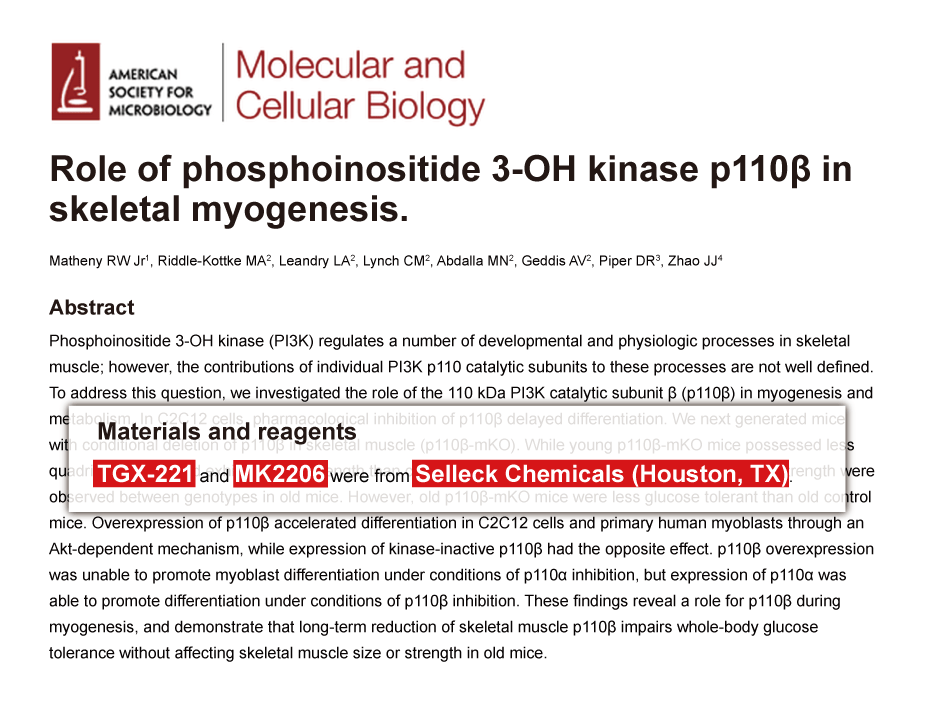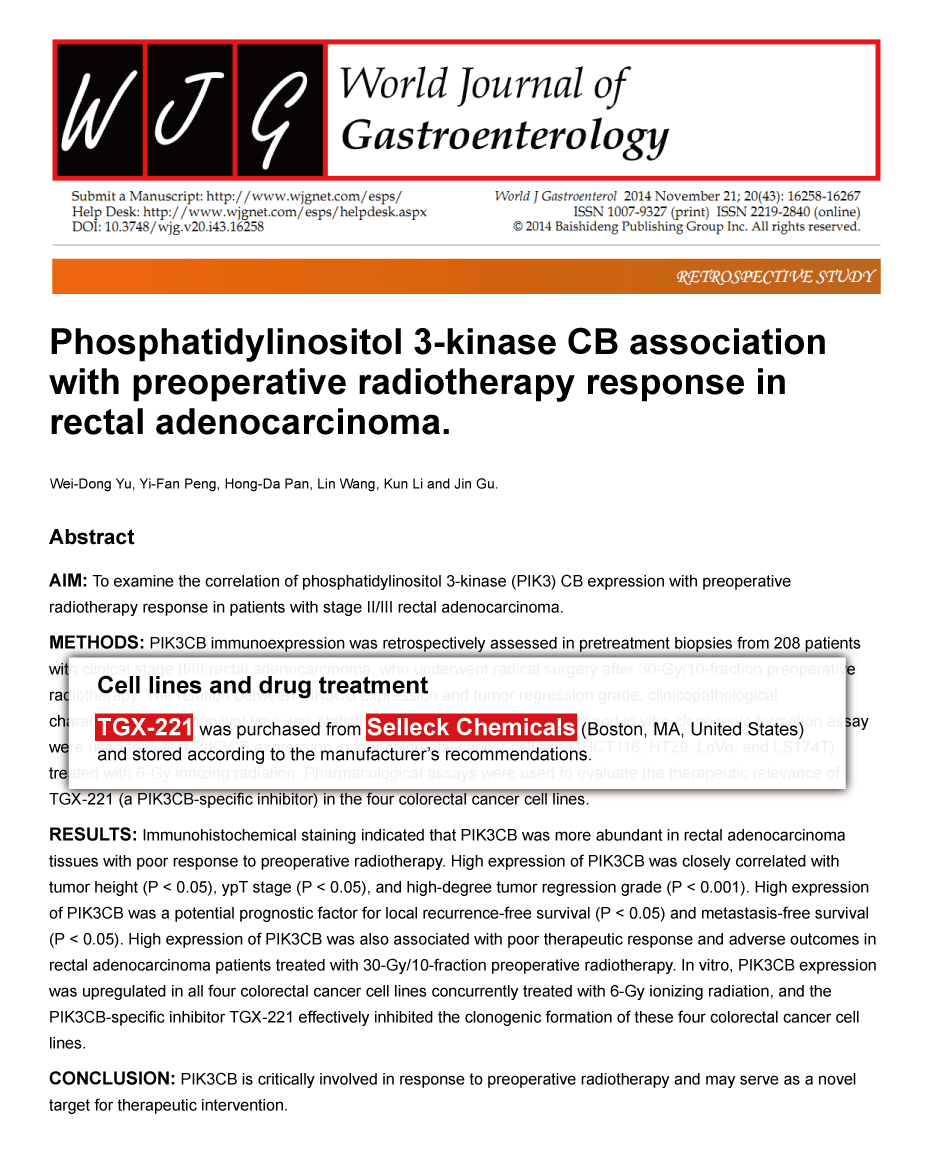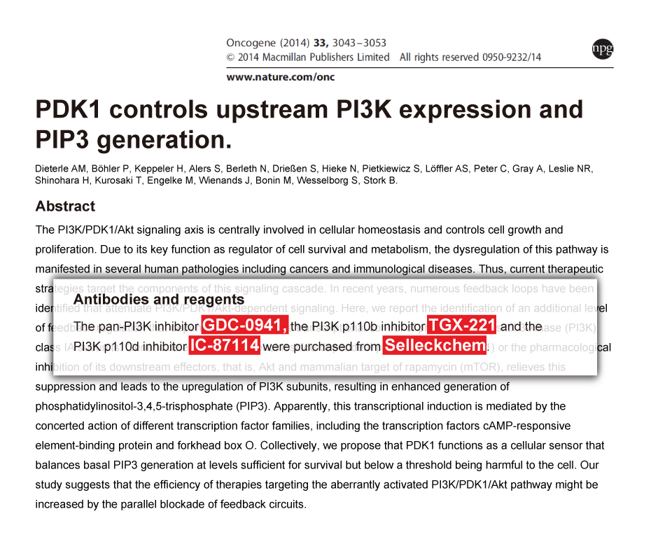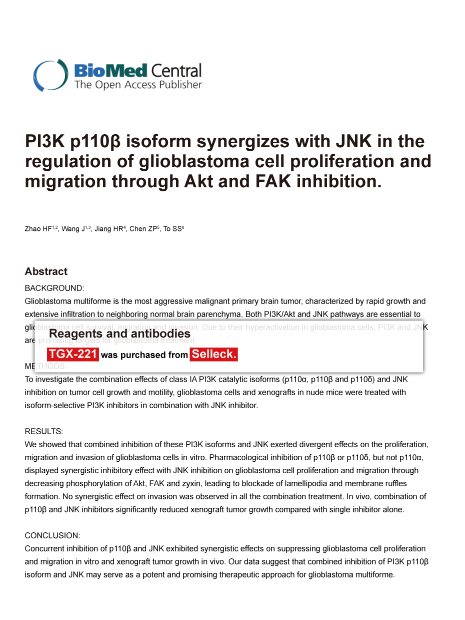 Mol Med 2012 18, 336-45. TGX-221 purchased from Selleck.
