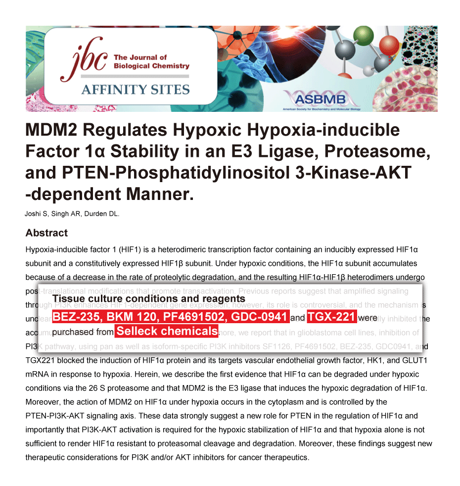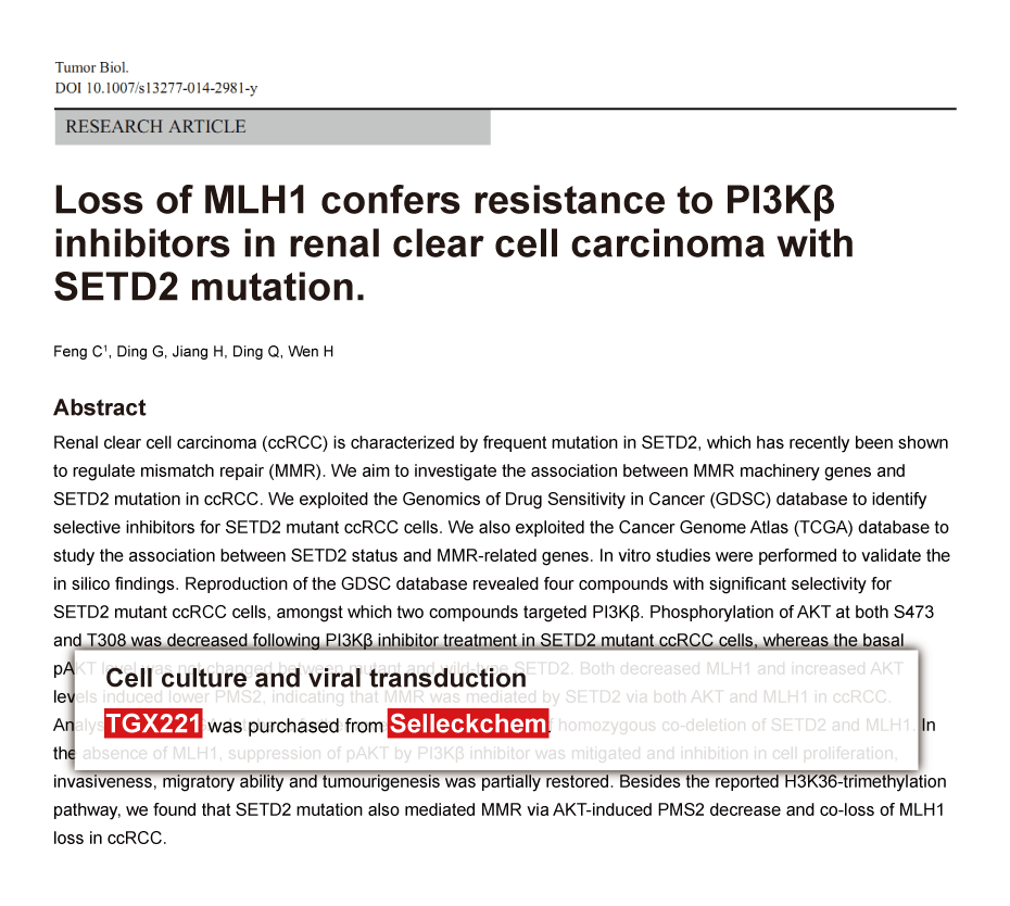 Saraswati Sukumar of Johns Hopkins University School of Medicine. TGX-221 purchased from Selleck.