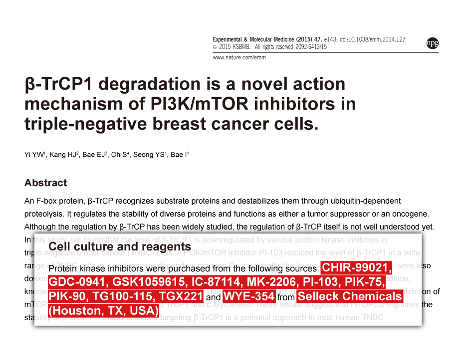 Answers to questions you may have can be found in the inhibitor handling instructions. Topics include how to prepare stock solutions, how to store inhibitors, and issues that need special attention for cell-based assays and animal experiments.