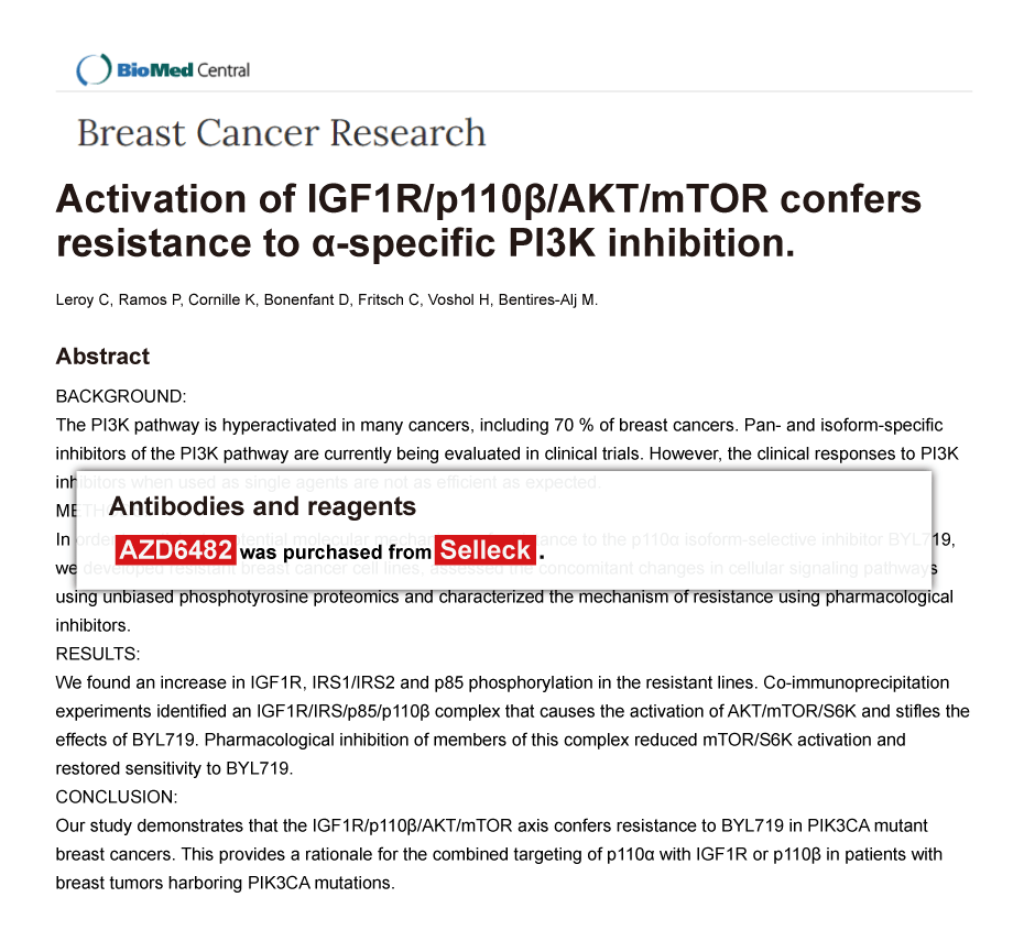 Mol Cancer Res, 2017. AZD6482 purchased from Selleck.