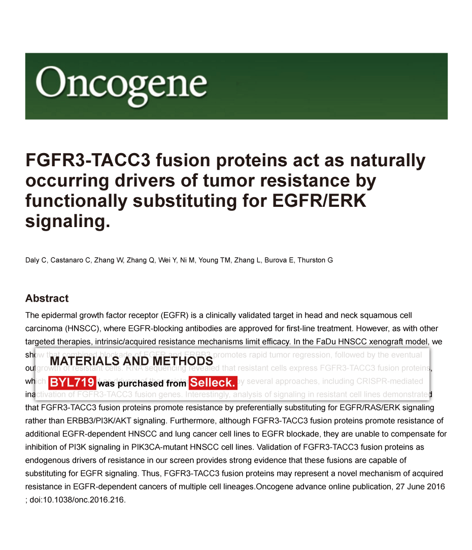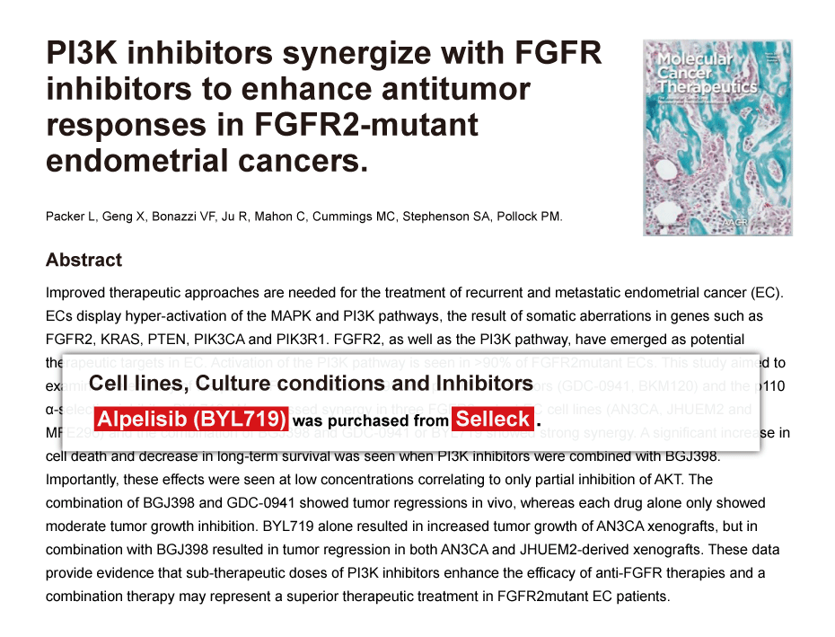 Mol Cancer Ther, 2017. Alpelisib (BYL719) purchased from Selleck.