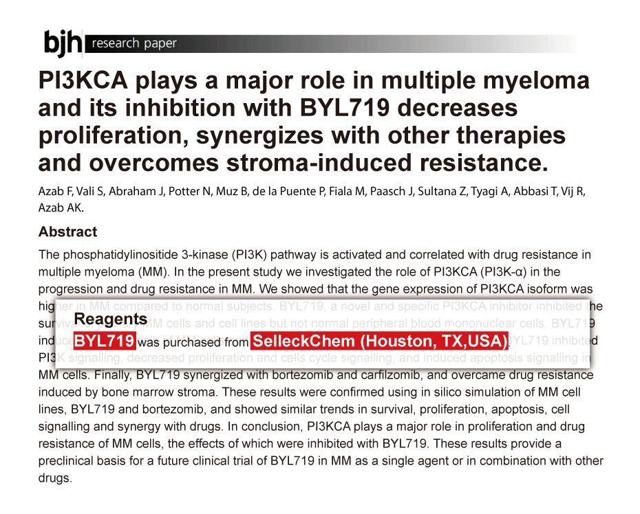 Br J Haematol 2014 165(1), 89-101. Alpelisib (BYL719) purchased from Selleck.