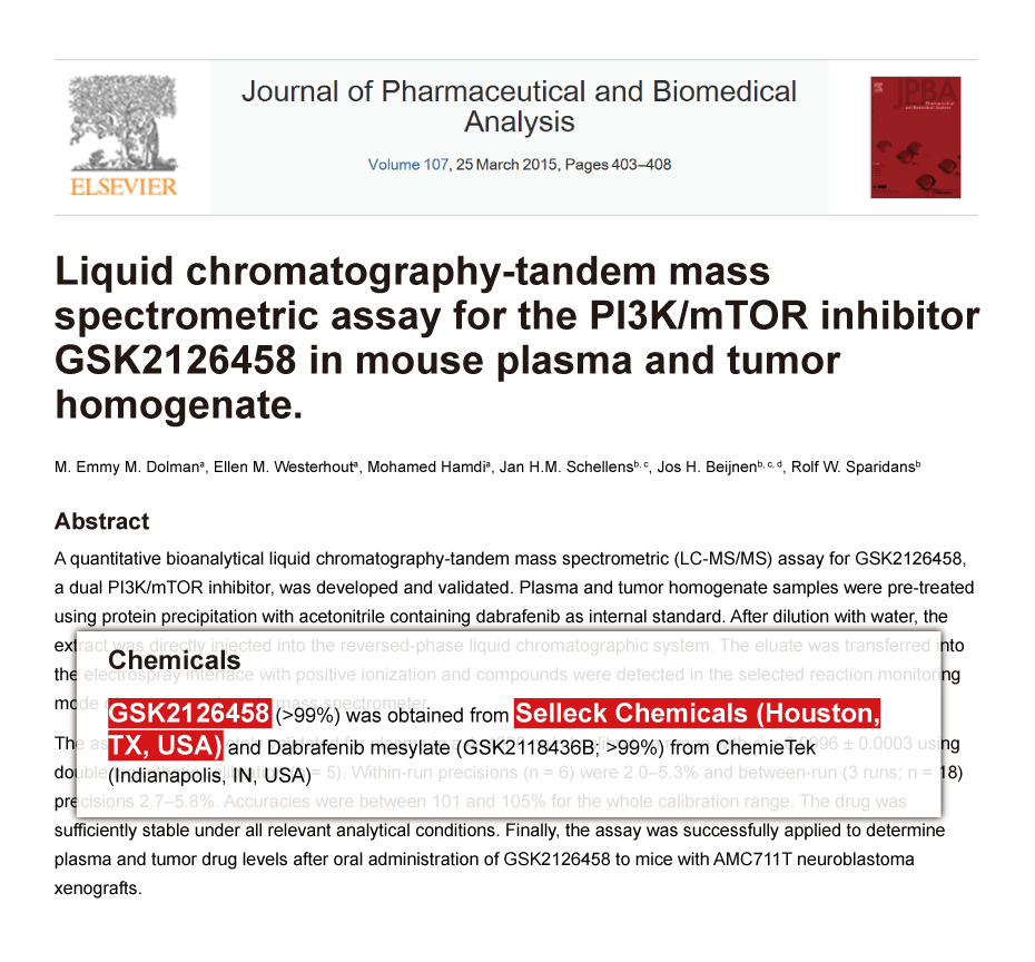 One customer. Omipalisib (GSK2126458, GSK458) purchased from Selleck.