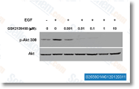 GSK2126458 potently inhibits the activity of common activating mutants of p110α (E542K, E545K, and H1047R) found in human cancer with Ki of 8 pM, 8 pM and 9 pM, respectively. [1] GSK2126458 causes a significant reduction in the levels of pAkt-S473 with remarkable potency in T47D and BT474 cells with IC50 of 0.41 nM and 0.18 nM, respectively. Furthermore, GSK2126458 leads to a G1 cell cycle arrest and produces the inhibitory effect on cell proliferation in a large panel of cell lines, including T47D and BT474 breast cancer lines with IC50 of 3 nM and 2.4 nM, respectively. [1] |